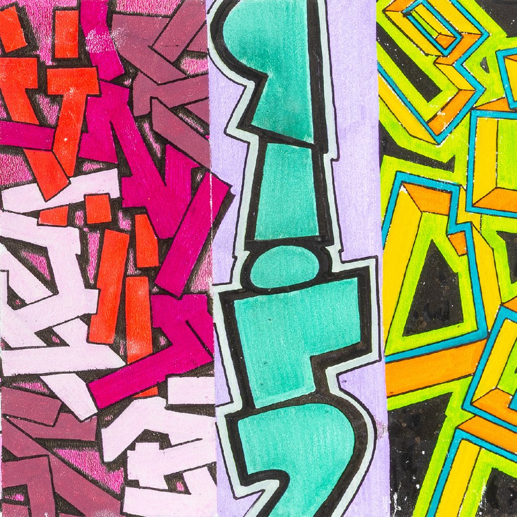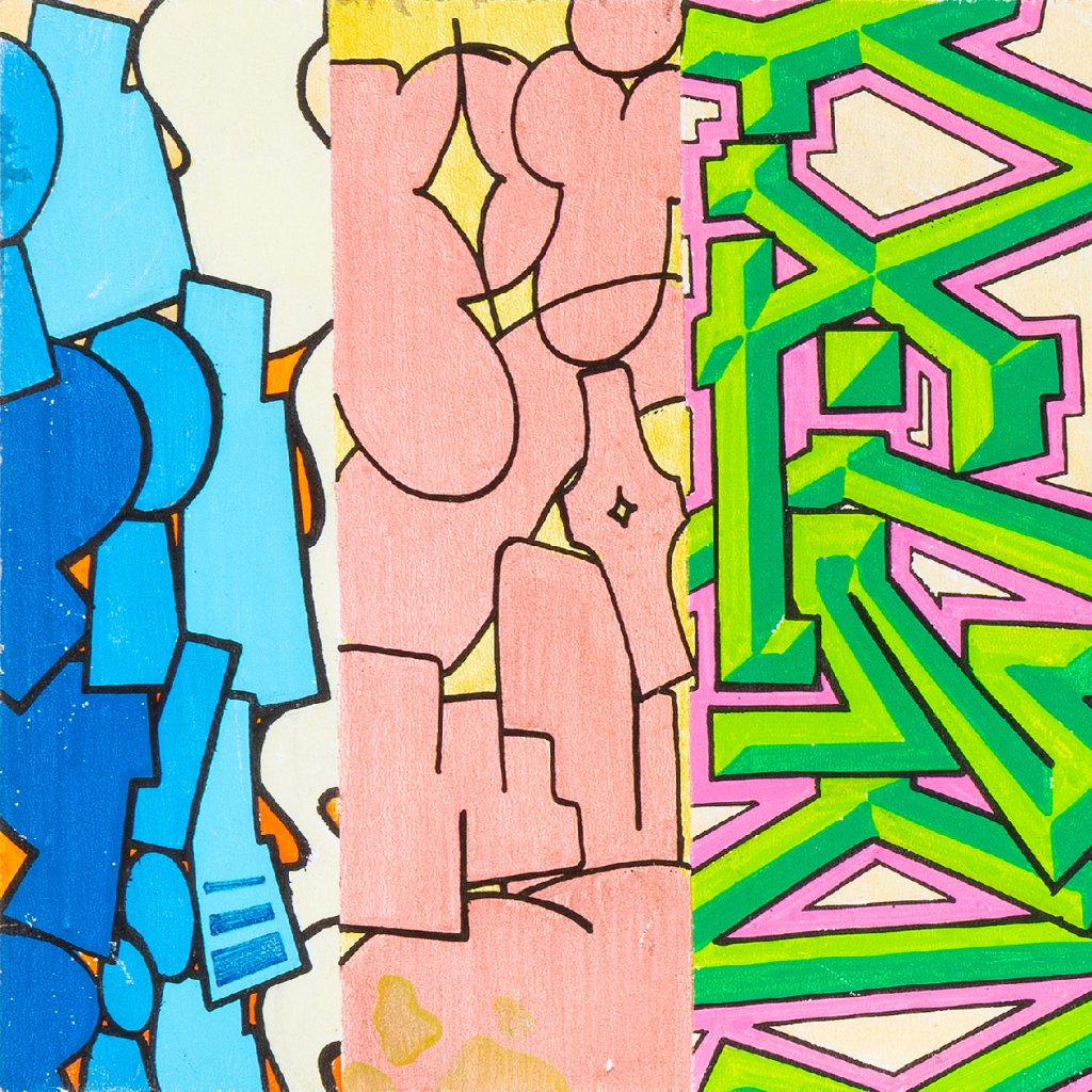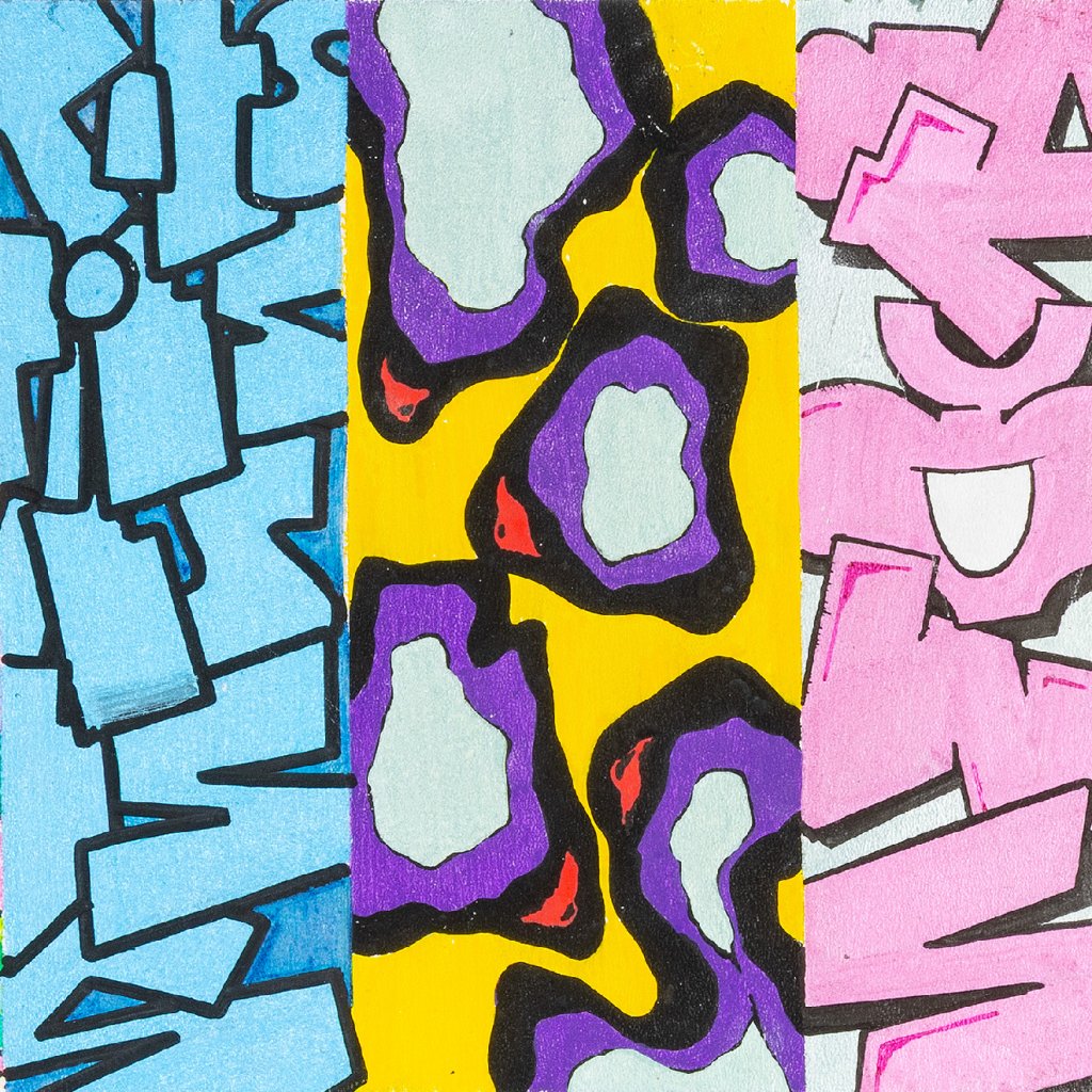 Panely nabízejí širokou škálu vizuálních zážitků – od jemných pastelových odstínů a organických tvarů v levé části přes dravé fialovo-černé kontrasty uprostřed až po neonově zelenou geometrii v závěru. Použití fixu na sololitu umožňuje autorovi udržet naprostou čistotu linií. Jednotlivé segmenty jsou odděleny s chirurgickou přesností, což zdůrazňuje grafický charakter díla. Každé pole funguje jako samostatná mikro-kompozice. Formát 15,5 × 50 cm je v kontextu graffiti netradiční a evokuje pohled na projíždějící vlak (wholecar) nebo fragment zdi, kde se vedle sebe potkávají různí autoři. Zde je však autorem všech stylů PiLS, čímž ukazuje šíři svého talentu.