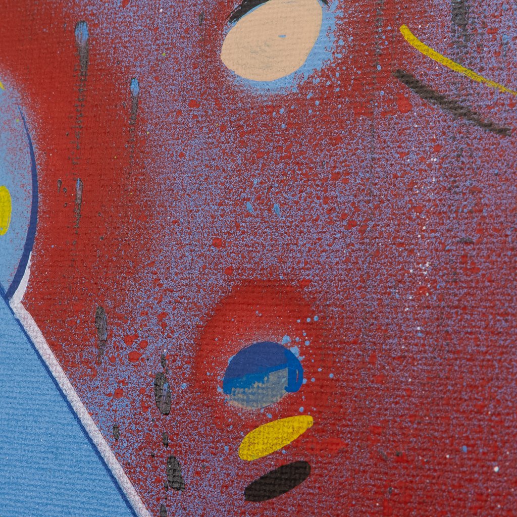Malba „Jacoby Gepreux“ od autora SKLON je působivou studií geometrické dekonstrukce a dynamické kompozice. SKLON, známý svou prací v oblasti post-graffiti a abstraktního umění, zde mistrně spojuje surovou energii spreje s precizností malby akrylem.