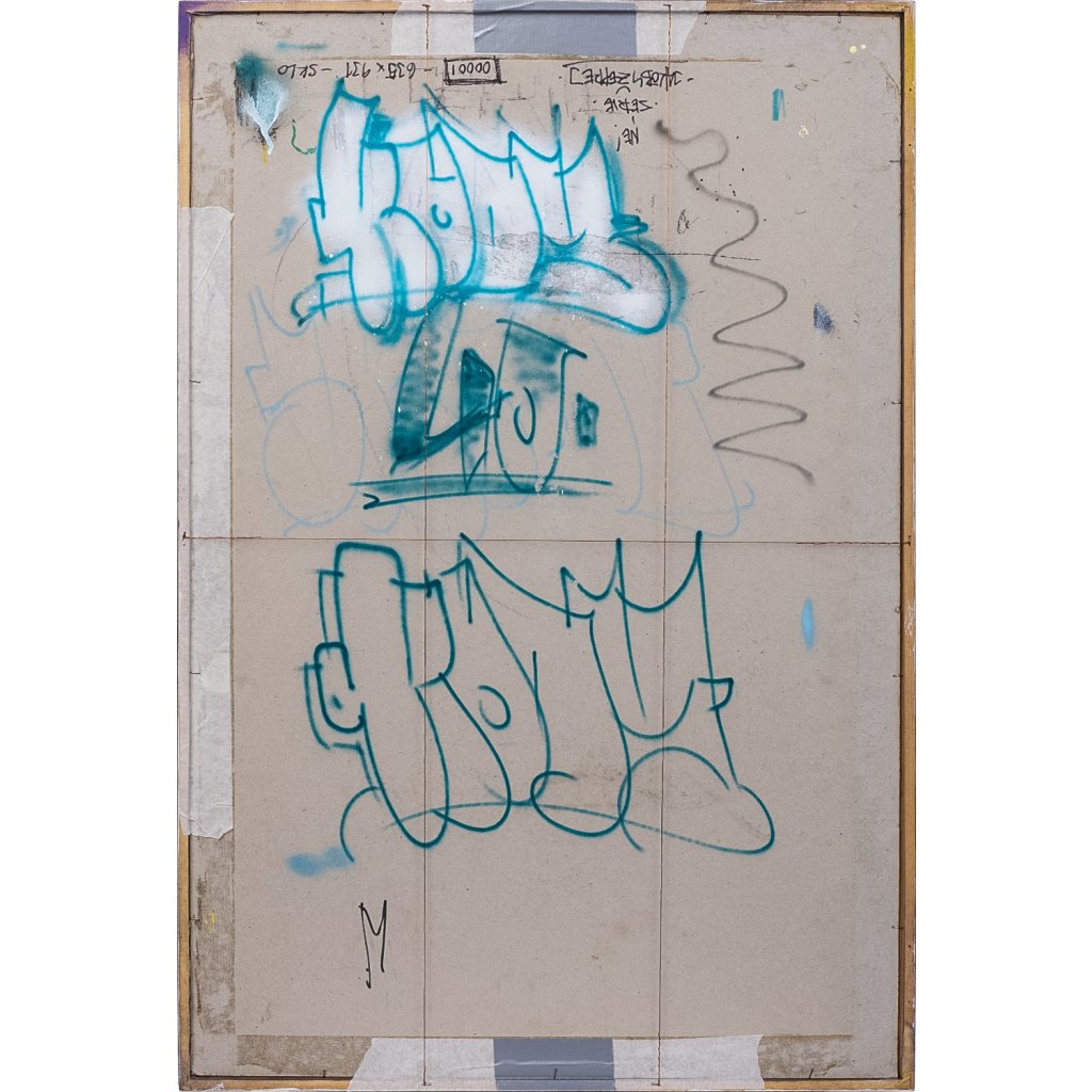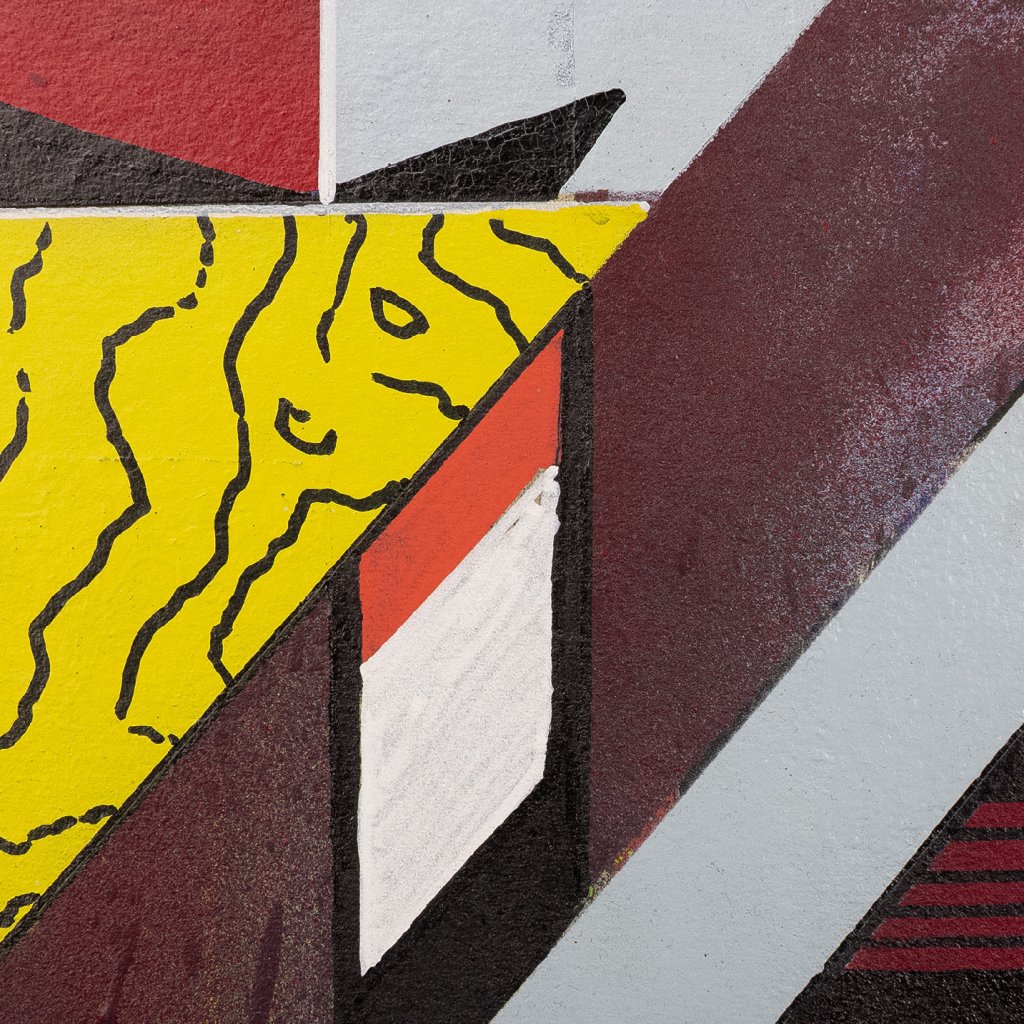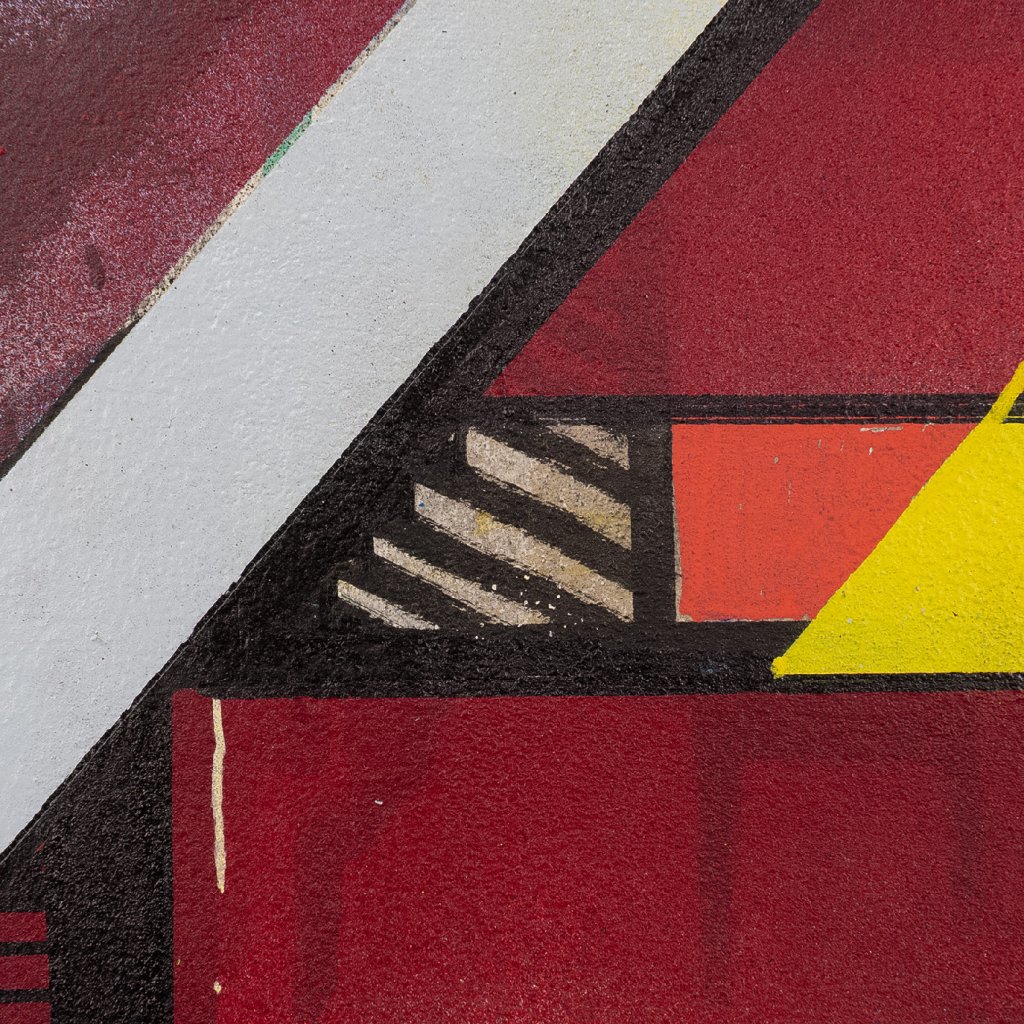 SKLON mistrně využívá kombinovanou techniku akrylu a spreje na kartonu, kdy se přesné, ostré hrany geometrických segmentů střídají s raw, sprejovými texturami a stékanci. Motiv písma a stylizovaných čísel je hluboce zasazen do struktury domu, čímž dílo odkazuje na autorovy kořeny v graffiti estetice a neustálé hledání rovnováhy mezi pouliční dynamikou a galerijní precizností.