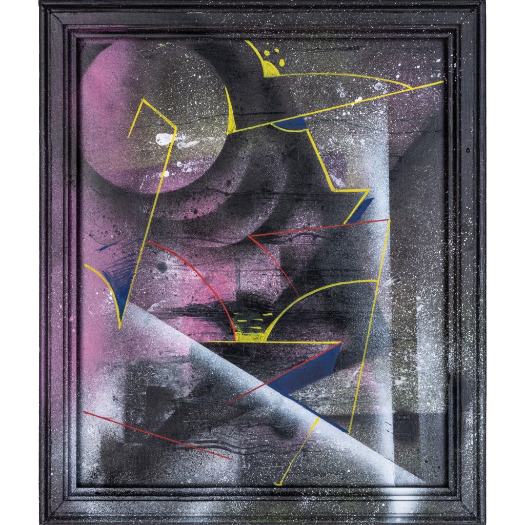 V tomto obrazu Sklon mistrně kombinuje principy graffiti dekonstrukce s pečlivou geometrickou kompozicí. Dominantní je použití kombinované techniky na kartonu, kde se prolíná preciznost akrylových linií a surovostí sprejových vrstev. Právě tato interakce dává dílu charakteristickou dynamiku a pouliční feeling.