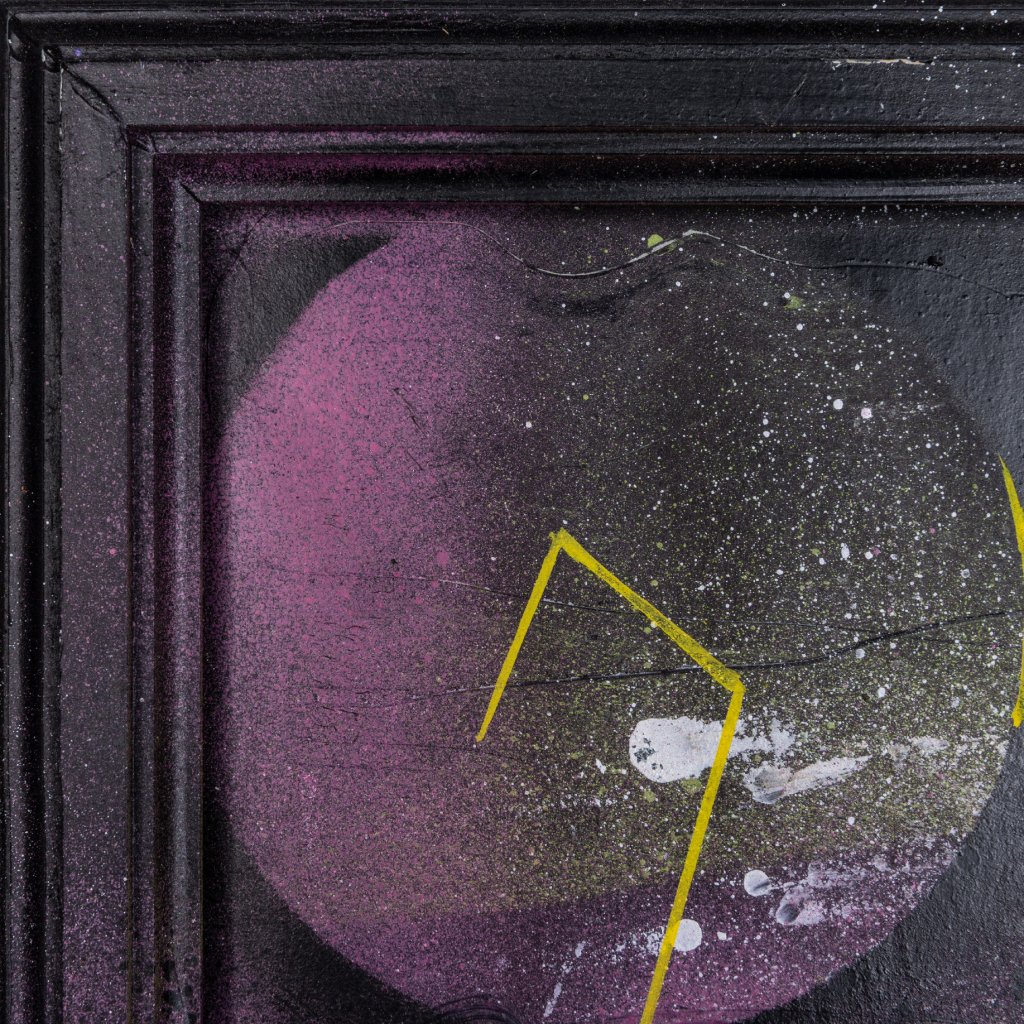 I přes menší rozměr (41,5 × 35,5 cm) si dílo zachovává monumentální a expresivní náboj. Je zarámováno pro galerijní prezentaci, čímž zdůrazňuje přechod SKLONa z ulice do kontextu moderního vizuálního umění.