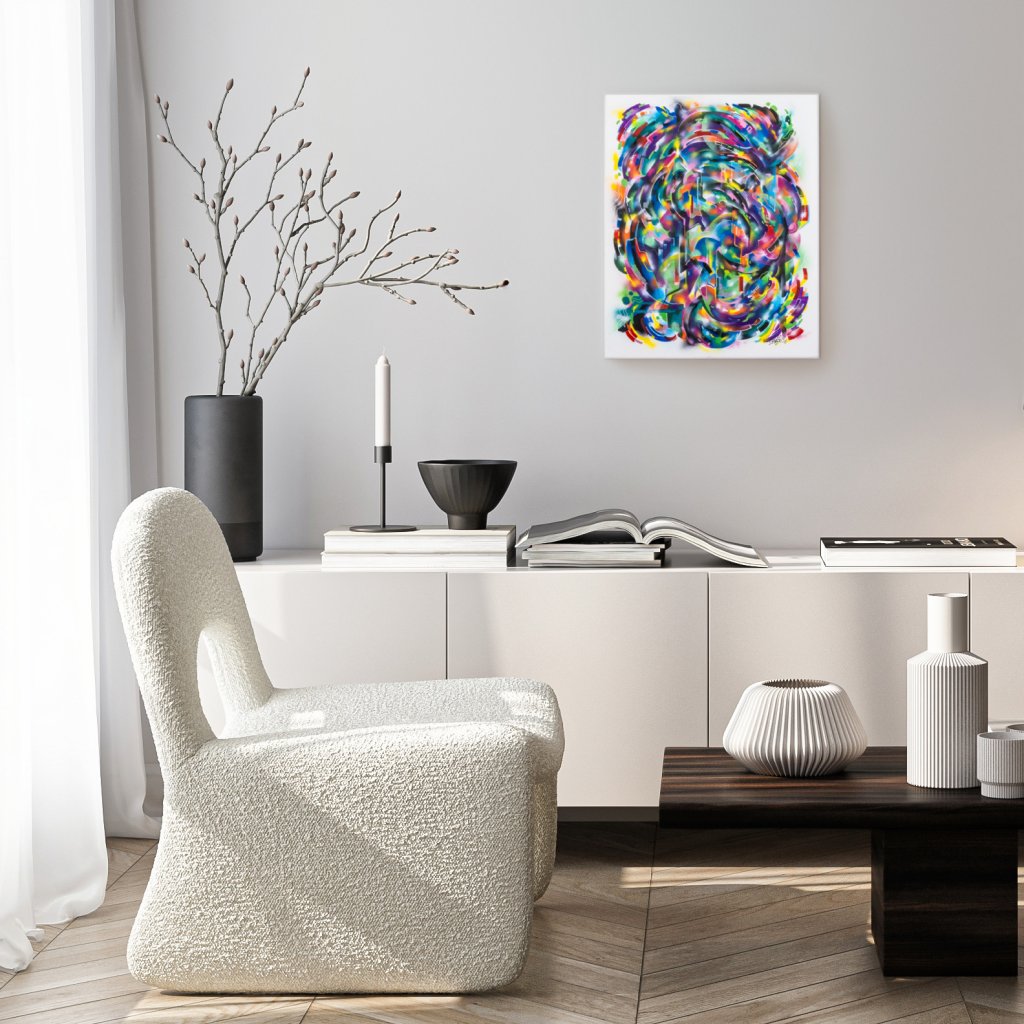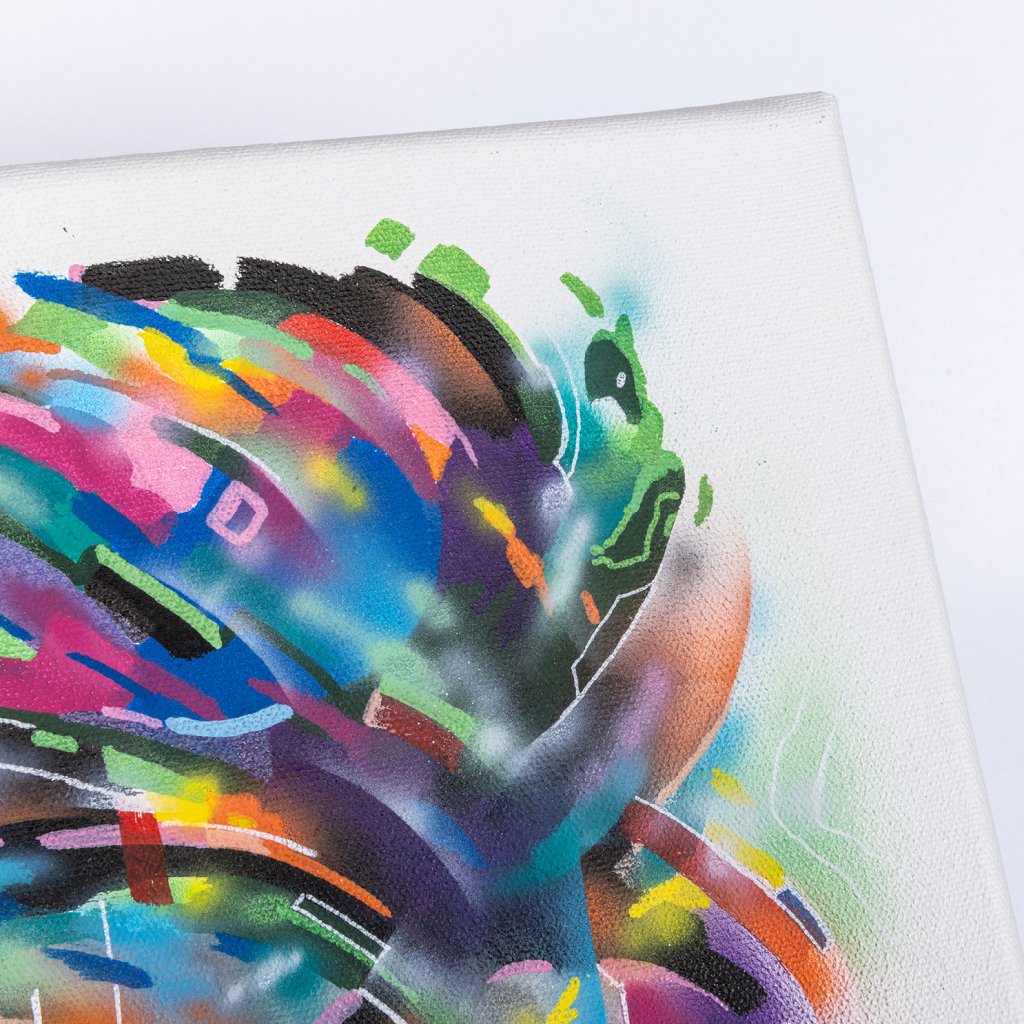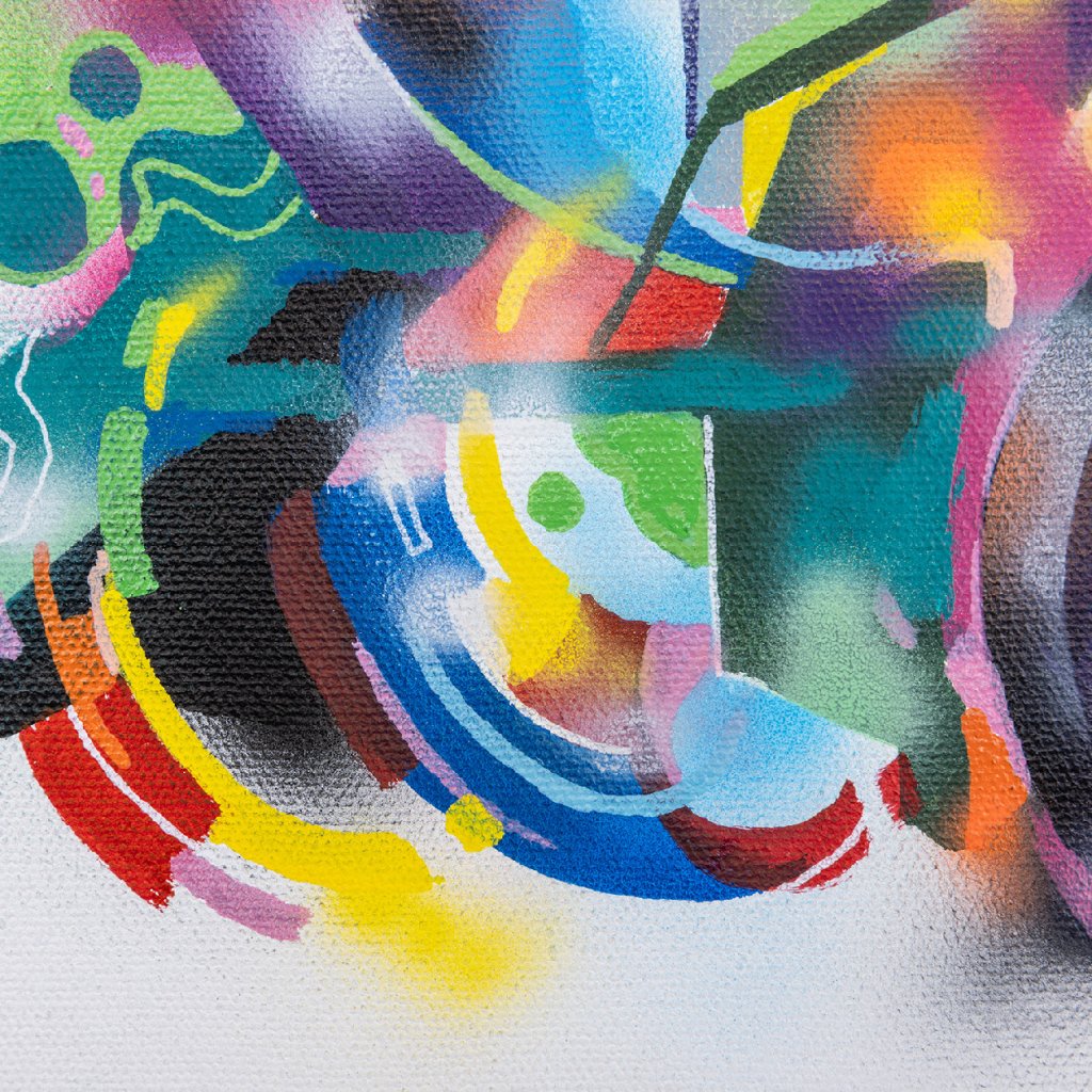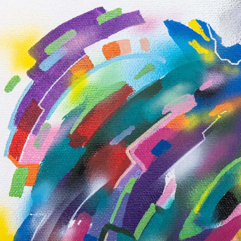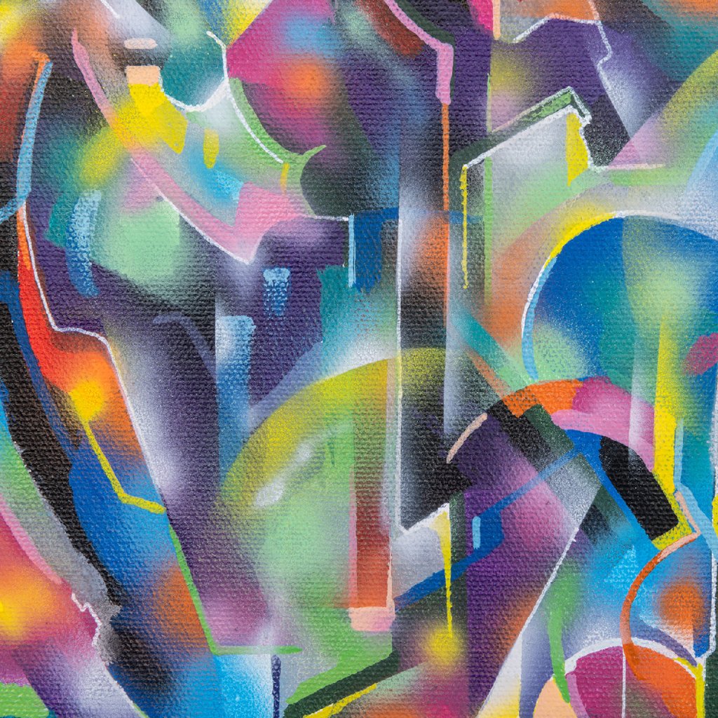 Dílo „G“ je fascinujícím ztělesněním vizuální energie a komplexnosti, která je charakteristická pro tvorbu YUDOE 06. Tato dynamická malba, provedená kombinovanou technikou akrylu a spreje na plátně, představuje archetypální příklad jeho práce s explozí barev a propracovanými kompozicemi, jež se staly jeho poznávacím znamením ve veřejném i galerijním prostoru.