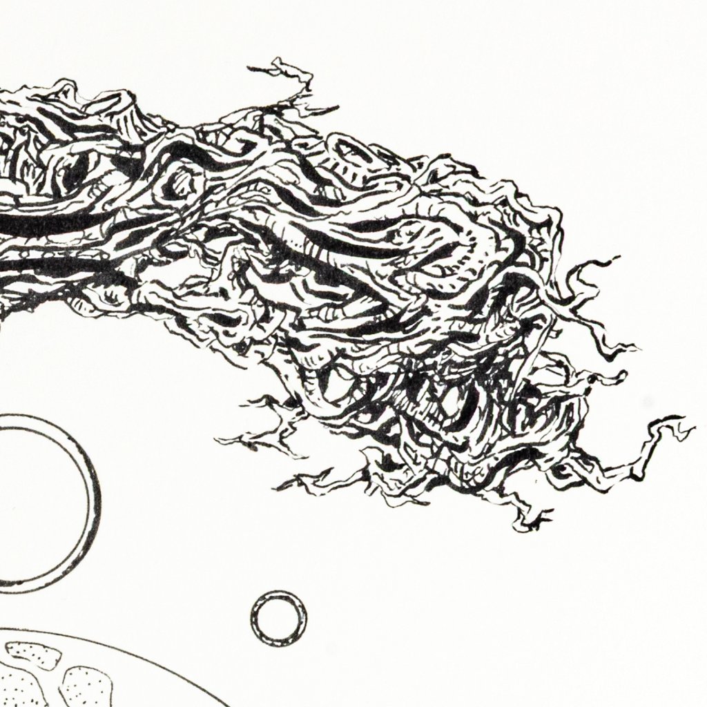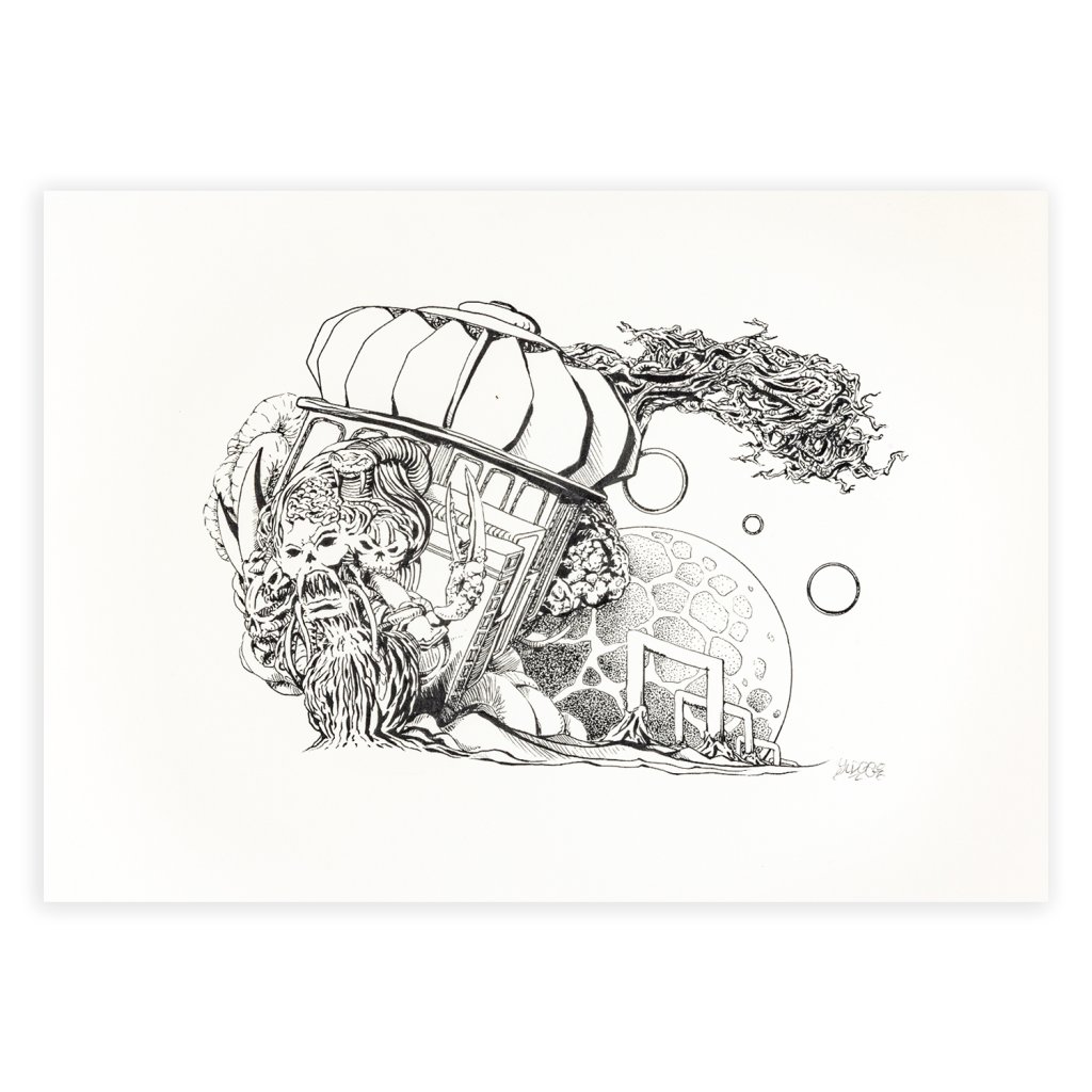 Zatímco YUDOE 06 vdechuje život explozivně barevným muralům ve veřejném prostoru, v tomto komorním díle demonstruje sílu kontemplativní, temné fantazie. Kresba je silným vyjádřením surrealistického, kyber-mytického příběhu, který odráží jeho celoživotní inspiraci komiksem a snahu najít nové možnosti práce s tvarem a formou.