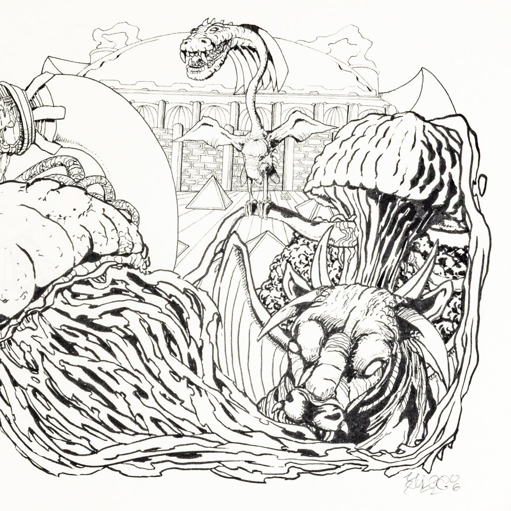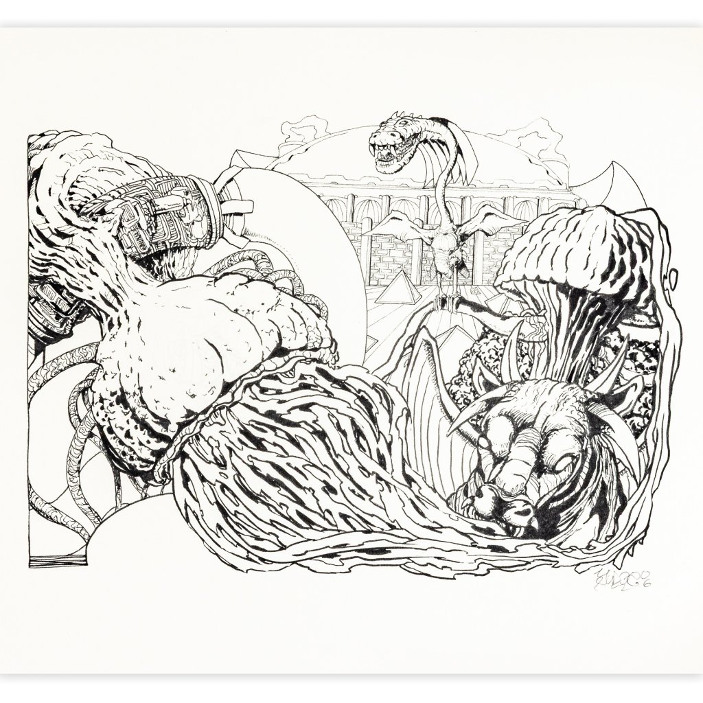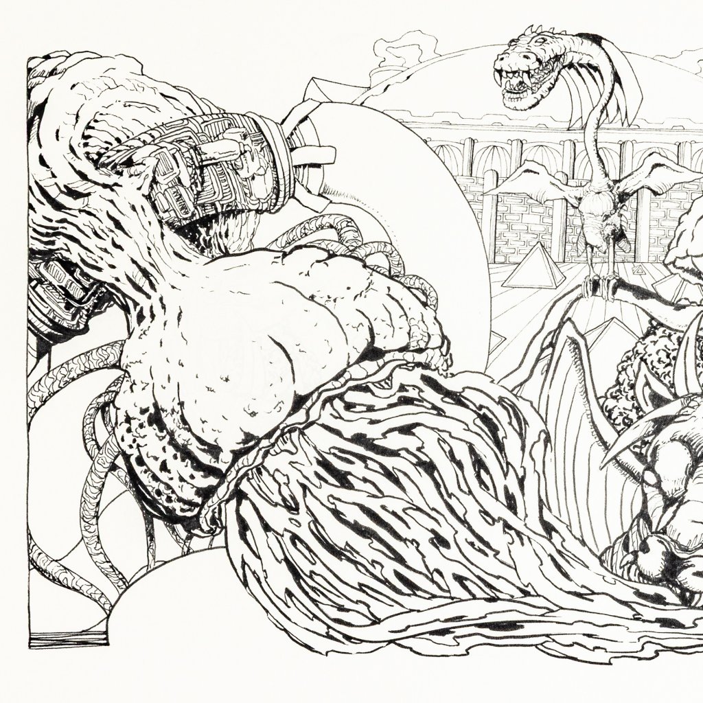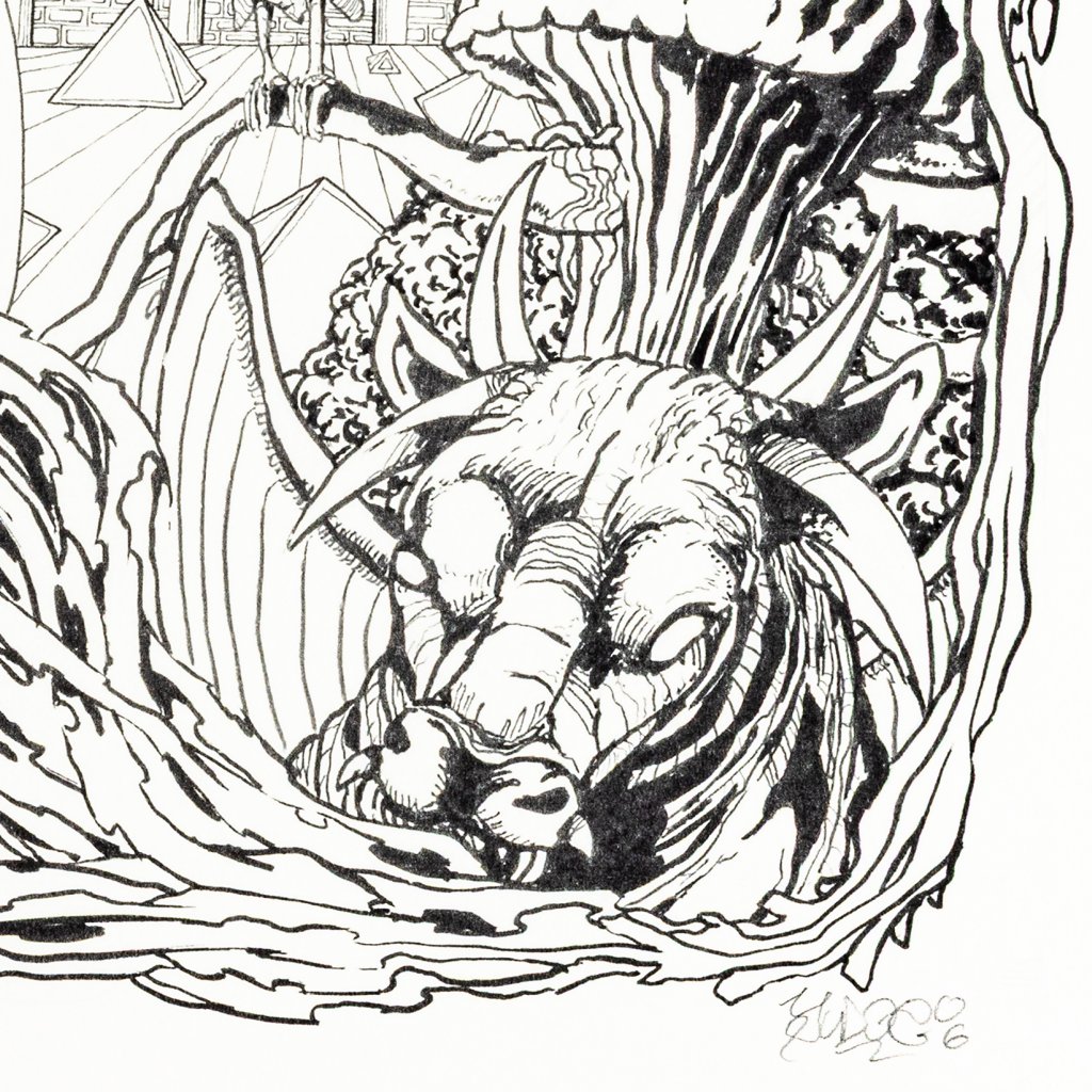 Tisk na Munken Pure 300g papíře. Vytištěn pouze 1ks. Signováno tužkou. Dílo „Mecha Mutants Island“ je intenzivním vizuálním manifestem, který stojí na pomezí klasické figurativní kresby, sci-fi komiksu a expresivní detailní narace. Yudoe 06 zde prezentuje svůj mistrný tah perem. Charakteristickým prvkem je vysoká technická preciznost, s níž autor vytváří husté, organické textury a stínování.